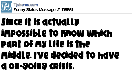 X says Since it is actually impossible to know which part of my life is the middle, I've decided to have a on-going crisis.