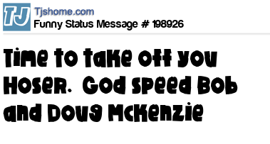 X says Time to take off you Hoser. God speed Bob and Doug Mckenzie