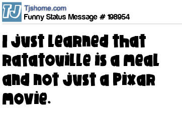 X says I just learned that ratatouille is a meal and not just a Pixar movie.