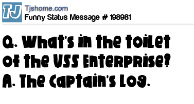 X says Q. What's in the toilet of the USS Enterprise? A. The Captain's log.