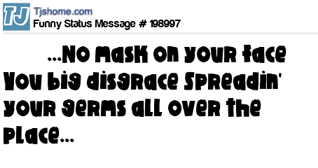 - # 198910 No mask on your face, you big disgrace, spreading your germs all over the place. Freddie Mercury,