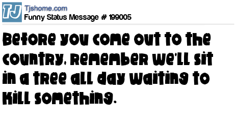 X is Before you come out to the country, remember we'll sit in a tree all day waiting to kill something.