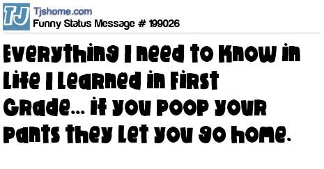 X says Everything I need to know in life I learned in First Grade... if you poop your pants they let you go home.