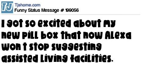 X says I got so excited about my new pill box that now Alexa won’t stop suggesting assisted living facilities.