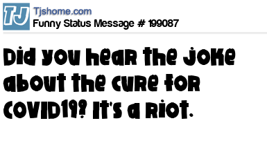 X Did you hear the joke about the cure for COVID19? It's a riot.