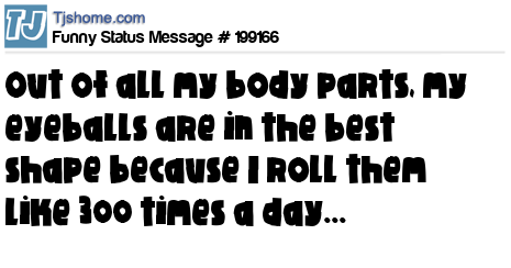 X says Out of all my body parts, my eyeballs are in the best shape because I roll them like 300 times a day...