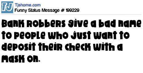 - # 82784 Bank robbers give a bad name to people who just want to deposit their check with a mask on, like me.