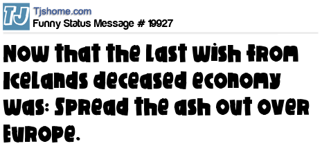 X  now that the last wish from Icelands deceased economy was: Spread the ash out over Europe.
