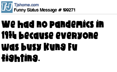 X We had no pandemics in 1974 because everyone was busy Kung Fu fighting.