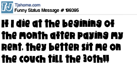 X is If I die at the begining of the month after paying my rent, they better sit me on the couch till the 30th!!