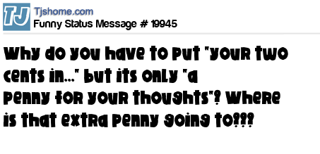 - # 51023 Why do you have to "put your two cents in"...but it's only a "penny for your thoughts" who get's the other penny......taxes