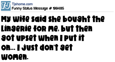X says My wife said she bought the lingerie for me, but then got upset when I put it on... I just don't get women.