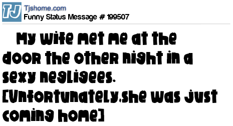 X says My wife met me at the door the other night in a sexy negligees. [Unfortunately,she was just coming home]