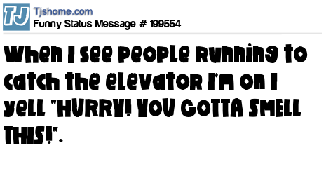 X says When I see people running to catch the elevator I'm on I yell "HURRY! YOU GOTTA SMELL THIS!".