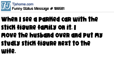 X says When I see a parked car with the stick figure family on it, I move the husband over and put my studly stick figure next to the wife.