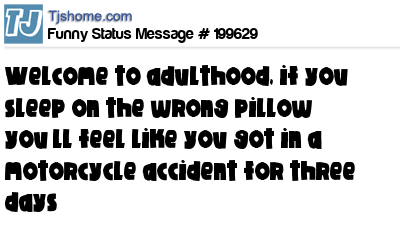 X says Welcome to adulthood, if you sleep on the wrong pillow you’ll feel like you got in a motorcycle accident for three days