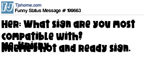 - # 91951 if you ask me my sign so you can see if we're compatible or not, I'll save you the suspense... we're not.