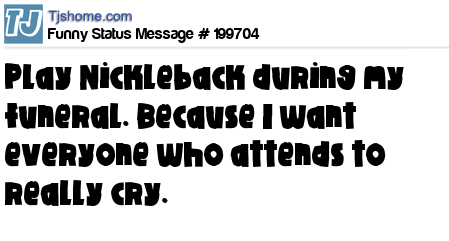 X says Play Nickleback during my funeral. Because I want everyone who attends to really cry.