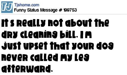 X says It’s really not about the dry cleaning bill. I’m just upset that your dog never called my leg afterward.