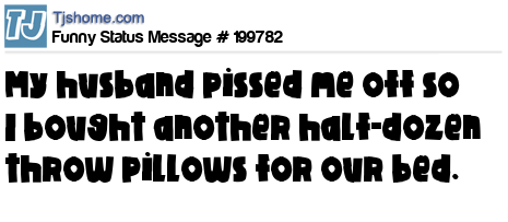 X says My husband pissed me off so I bought another half-dozen throw pillows for our bed.