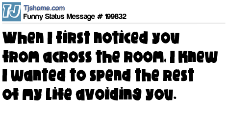 X says When I first noticed you from across the room, I knew I wanted to spend the rest of my life avoiding you.