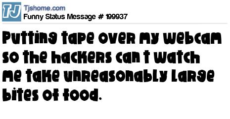 X says Putting tape over my webcam so the hackers can’t watch me take unreasonably large bites of food.