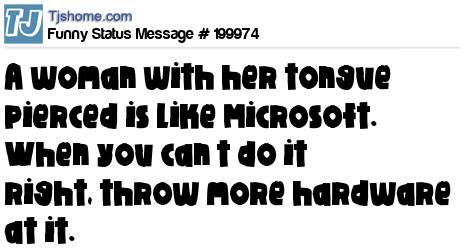 X says A woman with her tongue pierced is like Microsoft. When you can’t do it right, throw more hardware at it.