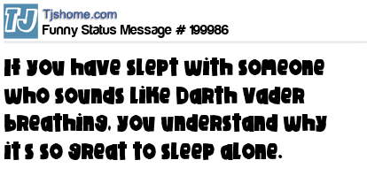X says If you have slept with someone who sounds like Darth Vader breathing, you understand why it’s so great to sleep alone.