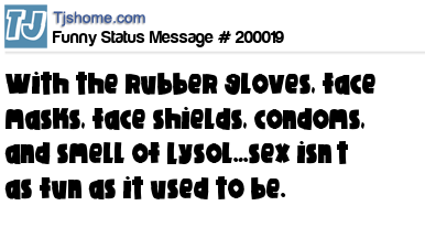 X says With the rubber gloves, face masks, face shields, condoms, and smell of Lysol…sex isn’t as fun as it used to be.