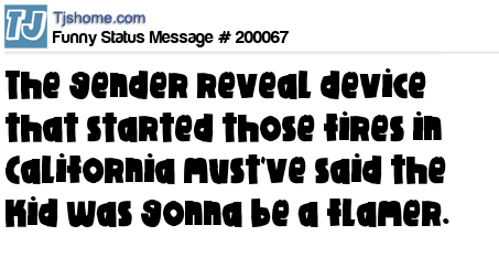 X says The gender reveal device that started those fires in California must've said the kid was gonna be a flamer.