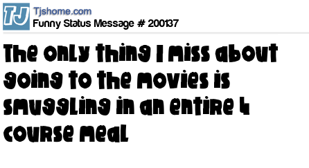 X says The only thing I miss about going to the movies is smuggling in an entire 4 course meal