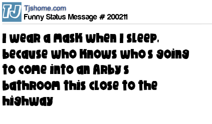 X says i wear a mask when I sleep, because who knows who’s going to come into an Arby’s bathroom this close to the highway