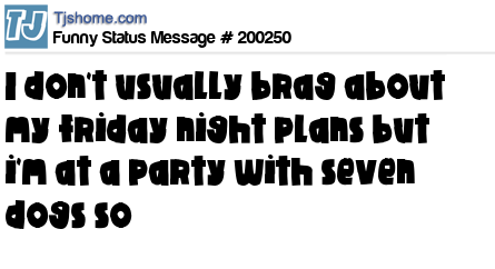 X says i don't usually brag about my friday night plans but i'm at a party with seven dogs so
