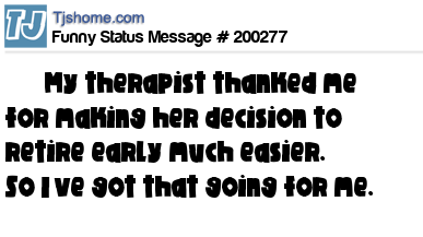 X says My therapist thanked me for making her decision to retire early much easier. So I’ve got that going for me.