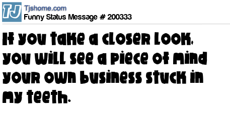 X says If you take a closer look, you will see a piece of mind your own business stuck in my teeth.