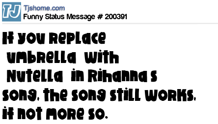 X says If you replace “umbrella” with “Nutella” in Rihanna’s song, the song still works, if not more so.