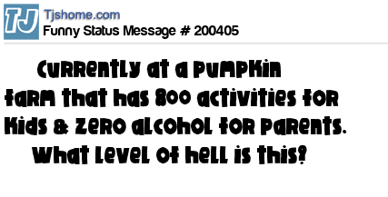 X says Currently at a pumpkin farm that has 800 activities for kids & zero alcohol for parents. What level of hell is this?
