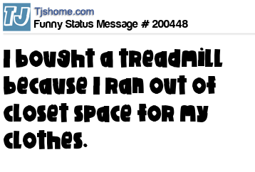 X says I bought a treadmill because I ran out of closet space for my clothes.