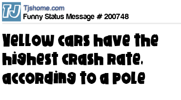 - # 200751 Yellow cars have the lowest crash rate, according a different pole