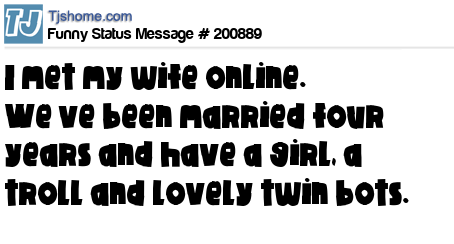 X says I met my wife online. We’ve been married four years and have a girl, a troll and lovely twin bots.