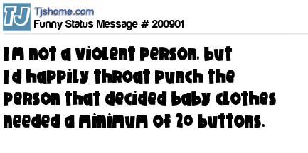 X says I’m not a violent person, but I’d happily throat punch the person that decided baby clothes needed a minimum of 20 buttons.