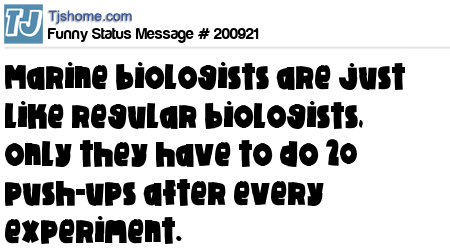 X says Marine biologists are just like regular biologists, only they have to do 20 push-ups after every experiment.