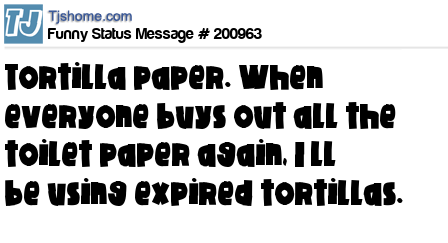 X says Tortilla paper. When everyone buys out all the toilet paper again, I’ll be using expired tortillas.
