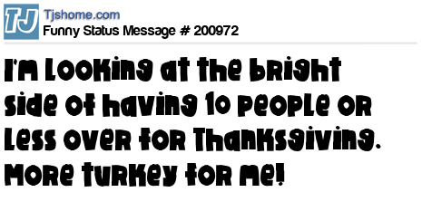 X says I'm looking at the bright side of having 10 people or less over for Thanksgiving. More turkey for me!