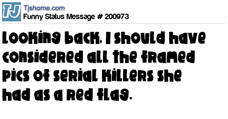 X says Looking back, I should have considered all the framed pics of serial killers she had as a red flag.