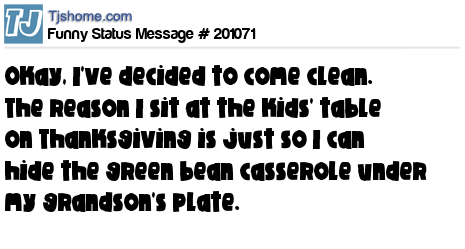 X Okay, I've decided to come clean. The reason I sit at the kids' table on Thanksgiving is just so I can hide the green bean casserole under my grandson's plate.
