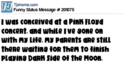 X says I was conceived at a Pink Floyd concert, and while I’ve gone on with my life, my parents are still there waiting for them to finish playing Dark Side of the Moon.