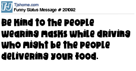 X is Be kind to the people wearing masks while driving who might be the people delivering your food.