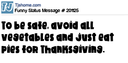 X says To be safe, avoid all vegetables and just eat pies for Thanksgiving.