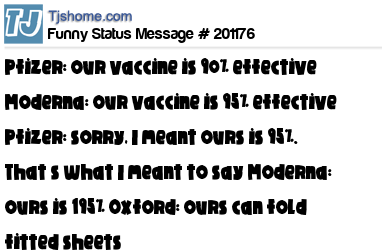 X says Pfizer: our vaccine is 90% effective Moderna: our vaccine is 95% effective Pfizer: sorry, I meant ours is 95%. That’s what I meant to say Moderna: ours is 195% Oxford: ours can fold fitted sheets